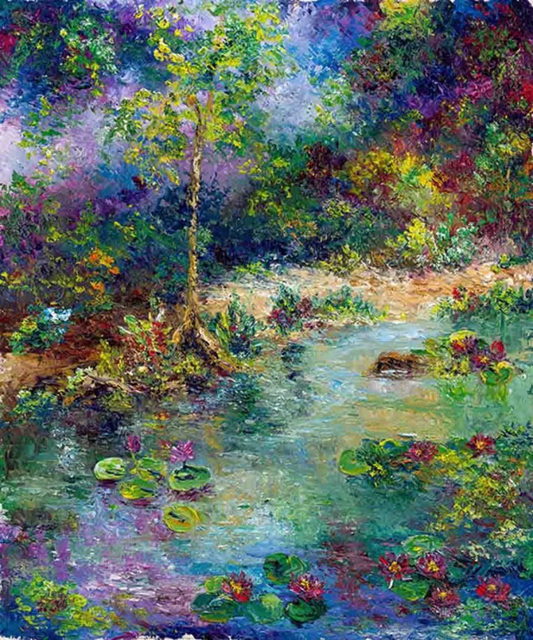 View Larger Image Amethyst Sparkle by AB MakkEditor Makk Art2025-09-29T20:20:38+00:00 Project Description Amethyst Sparkle by AB Makk is shows a stream flowing through a wooded area. The colors are jewel tones.