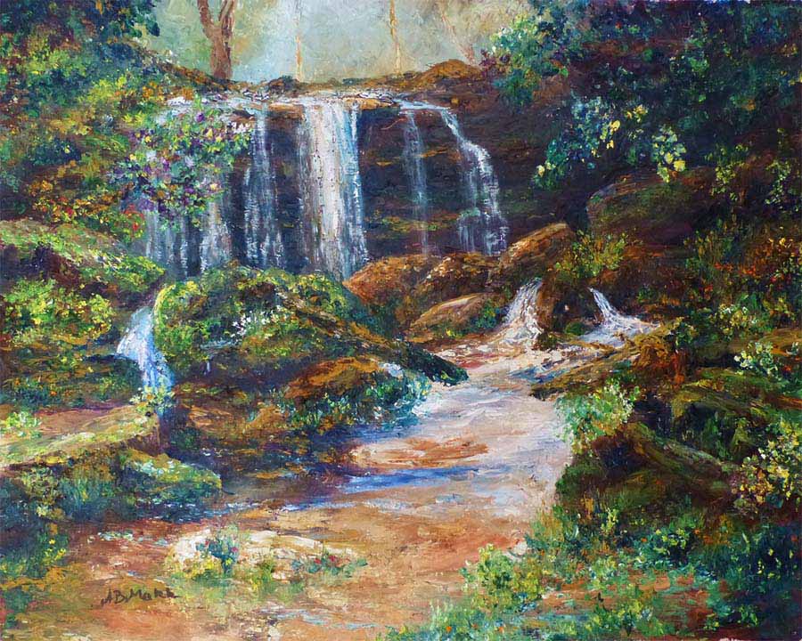 View Larger Image Hideaway by AB MakkEditor Makk Art2025-09-29T21:34:10+00:00 Project Description Hideaway by AB Makk shows a small waterfall flowing into a peaceful stream surrounded by bushes and greenery.